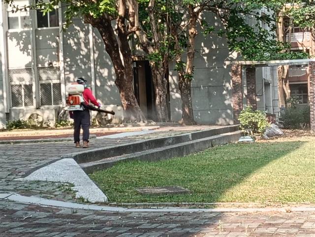 校園小黑蚊很多,所以校園全面消毒